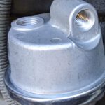 Der Vorfilter sitzt noch vor dem eigentlichen Diesel Filter und soll den gröbsten Dreck wie Wasser, Sand und Rost vom Motor fern halten. Der Vorfilter ist aus durchsichtigem Plexiglas und direkt hinter dem Motorblock eingebaut. Für hoffentlich nicht vorhandenes Wasser hat er unten eine kleine Ablassschraube und oben eine Schraube zum Entlüften.